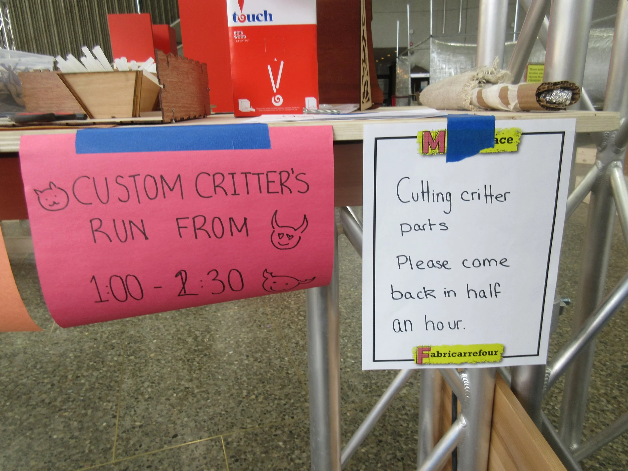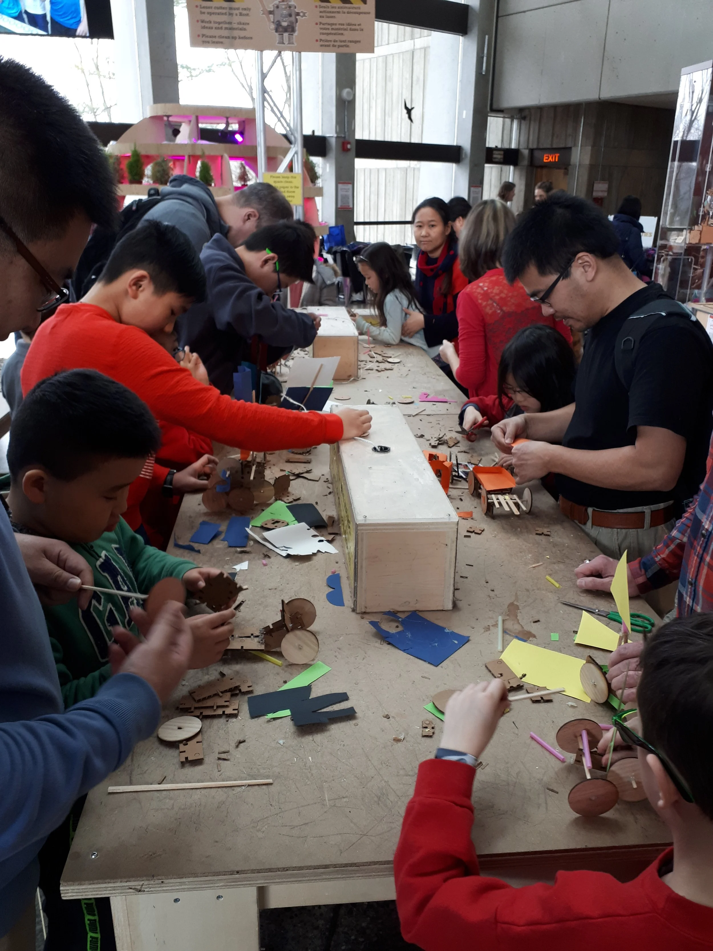 I was brought into this project as an employee of STEAMLabs, a Toronto makerspace. With my background in various rapid prototyping techniques, my coworkers and I were tasked with giving visitors a taste of the makerspace experience. Whether explaining and demonstrating how a 3D printer works or rapidly transforming visitors’ drawings into laser-cut creations, this work pushed me to learn new technological skills and figure out how to easily explain them every day.
