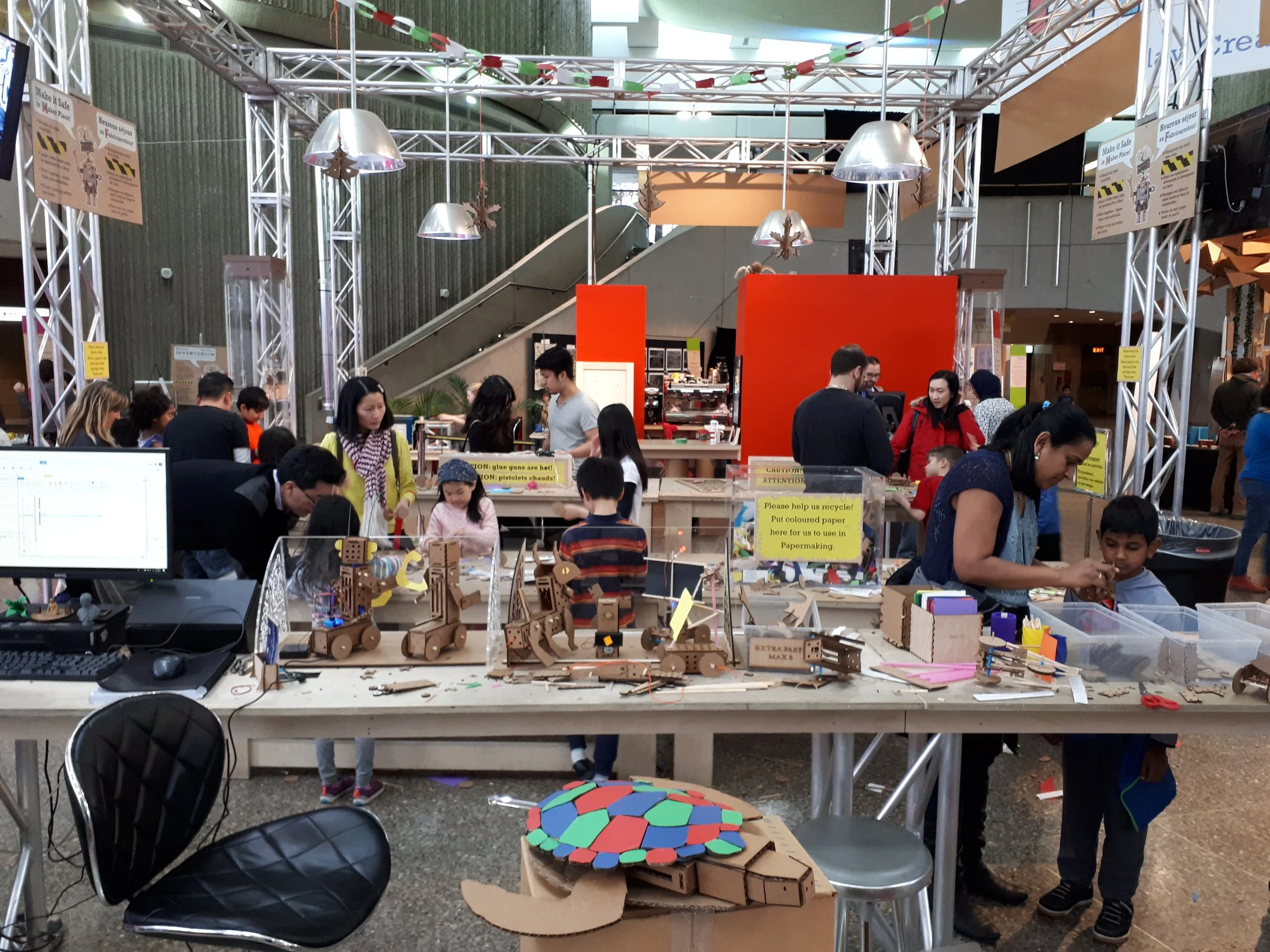 In celebration of the 150th anniversary of our Confederation, Canada geared up for celebrations. At the Ontario Science Centre, this celebration took the form of the Inventorium 1.0, an hands-on learning space featuring 3D printers, a chance to try out VR headsets and a station for visitors to build kinetic structures.